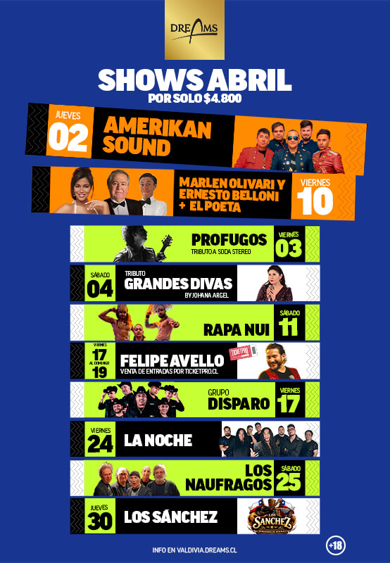 👉En el caso de los shows en el Centro de Eventos, las entradas deben adquirise a través de www.ticketpro.cl.