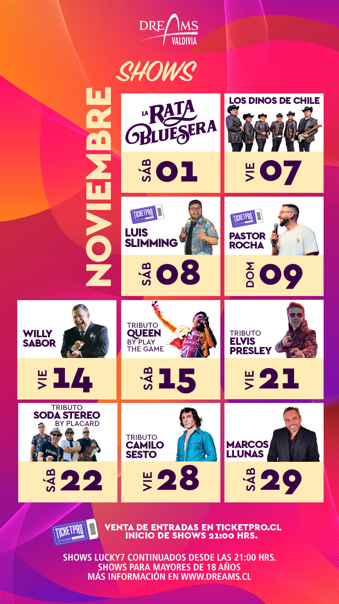 👉En el caso de los shows en el Centro de Eventos, las entradas deben adquirise a través de www.ticketpro.cl.